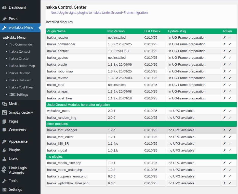 best of all, it is completely compatible, we can even run some of our plugins in parallel with the underground frame, partially plugins, partially modules and for some time the switch can be done by the site admin instantly, that is a kind of rollback function case something unpredicted happens